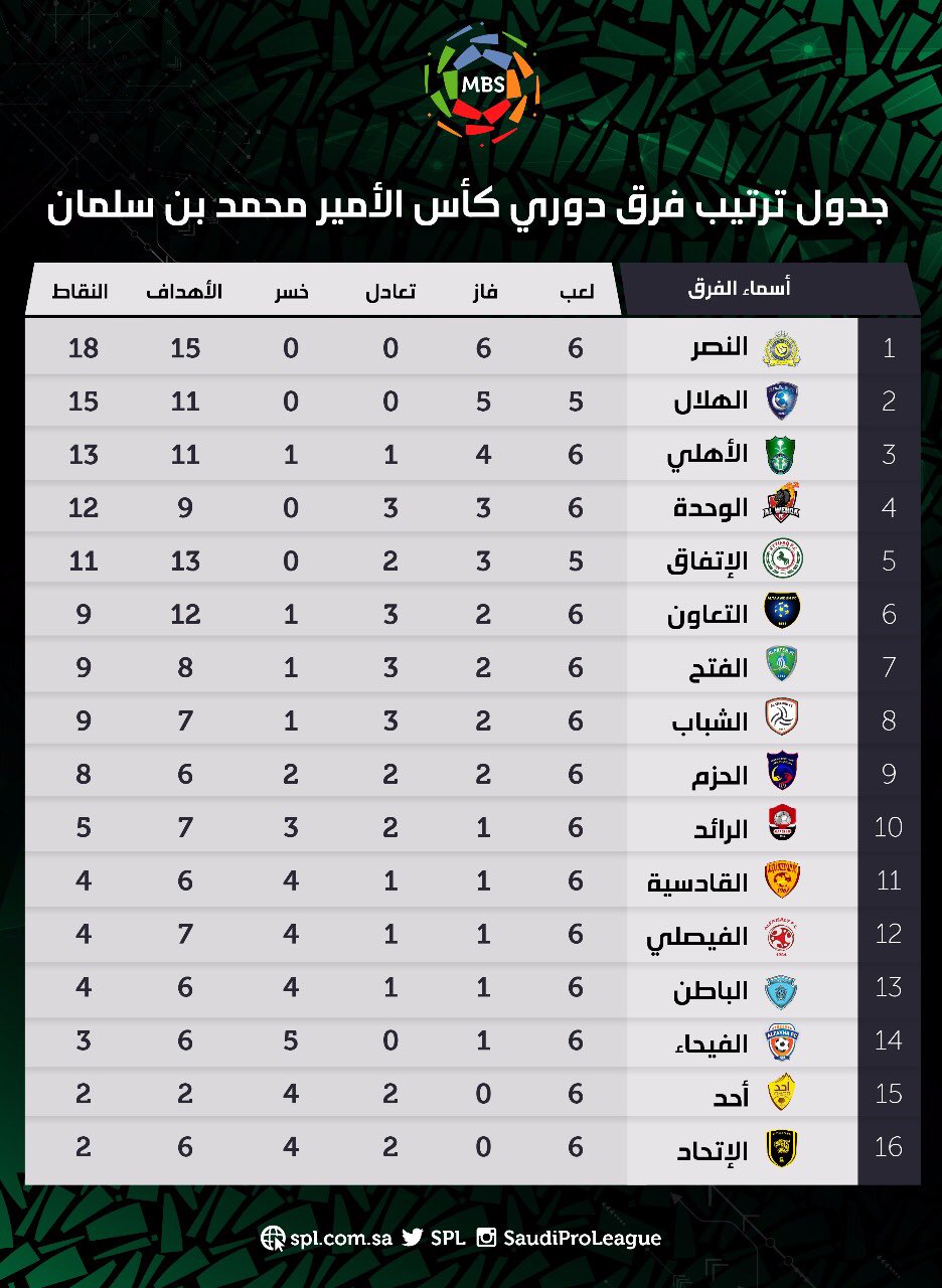 دوري كأس الأمير محمد بن سلمان Pa Twitter جدول ترتيب دوري كأس الأمير محمد بن سلمان للمحترفين بعد نهاية مباريات الجولة السادسة